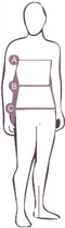 | Measurements should be taken directly on your body. A: Chest B: Waist C: Low Hip |